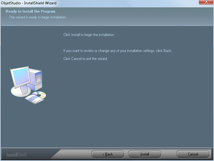 The Objet Studio setup wizard guides you when installing this software. Objet Studio is installed on the printer-server (“host”) computer, but it can also be installed on remote, “client” computers and on computers used to prepare files for printing models, or for training and demonstration purposes. During installation, you choose to install either the printer-server (“host”) application or the client application.