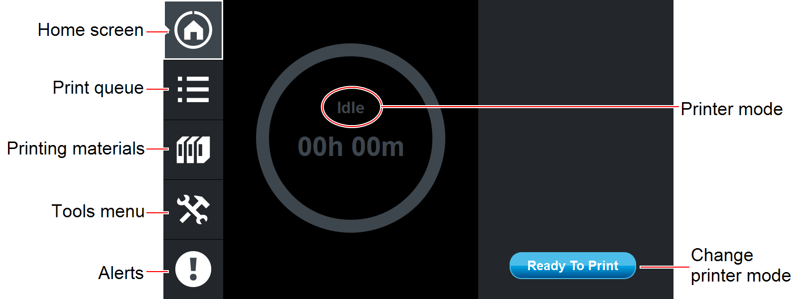 The default time until the interface goes blank is 15 minutes. You can change it to any duration from 1 minute to 24 hours in the printer application.