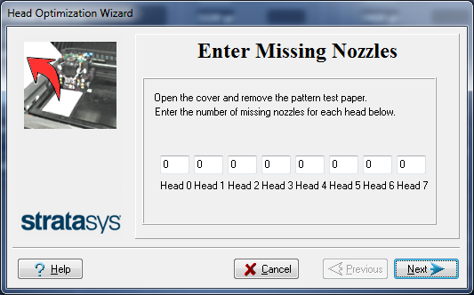 If the number of missing nozzles in all print heads is acceptable, the wizard continues with the head optimization process (below). |