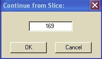 4. 在出现的 Continue from Slice(从切片继续)对话框中,检查打印机界面后确认切片数。
