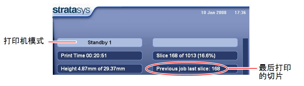 最后打印的切片数没有出现在打印机界面中,即使服务器计算机显示了 Continue from Slice(从切片继续)确认对话框。