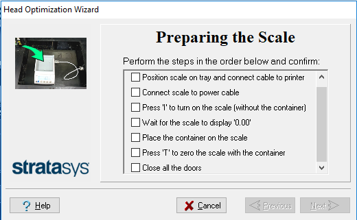提供的用于 Head Optimization (打印头优化)向导的天平 |
