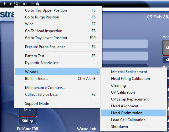 向导使用收集的数据分析打印头的条件并进行优化,以便打印头可使用均匀的材料层打印。