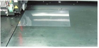 当出现以下屏幕时,将透明薄片置于成型托盘上 — 紧挨托盘左后边(请参见下文)。 |