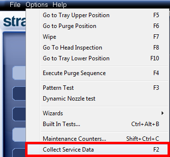 Options (옵션) 메뉴에서 Collect Service Data (정비 데이터 수집)를 선택합니다.