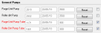 Maintenance Counters (유지 관리 카운터) 화면이 열리면 General Pumps (일반 펌프) 섹션으로 이동합니다.