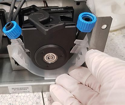 튜브 교체가 필요한 폐기물 펌프를 확인합니다. |