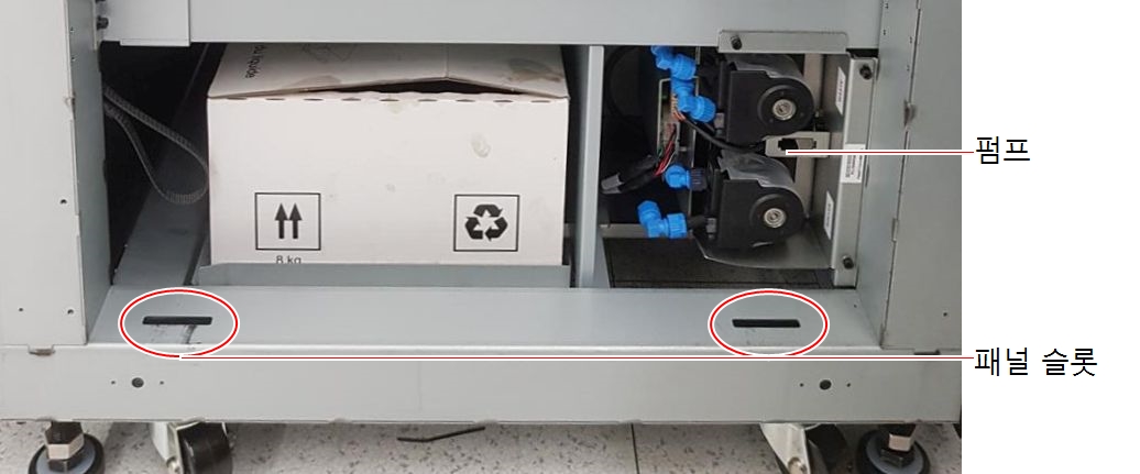 교체해야 할 폐기물 펌프 튜브는 빨간색으로 표시됩니다.