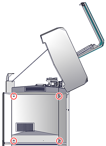 육각(알렌) 키를 사용하여 프린터 패널을 고정하는 나사 네(4) 개를 제거합니다. |