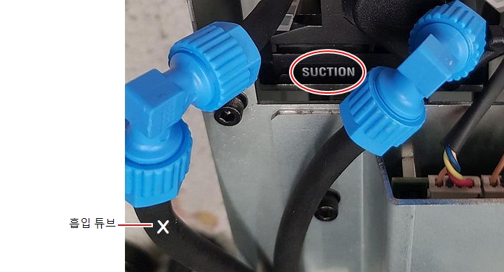 펌프의 흡입구 쪽에 연결된 튜브에 표시합니다. |