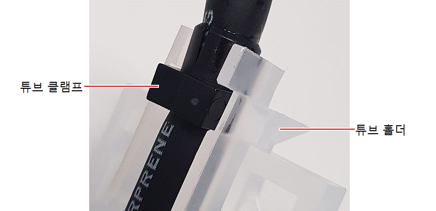 중요: 그림과 같이 튜브 홀더가 양쪽에 래치로 고정되어 있는지 확인하십시오.