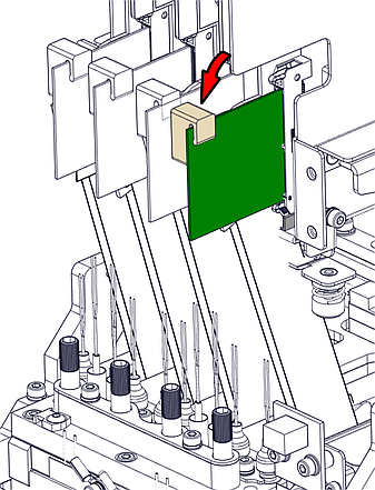注意:确保插入将驱动卡上的触点朝向打印模块的打印头插入。