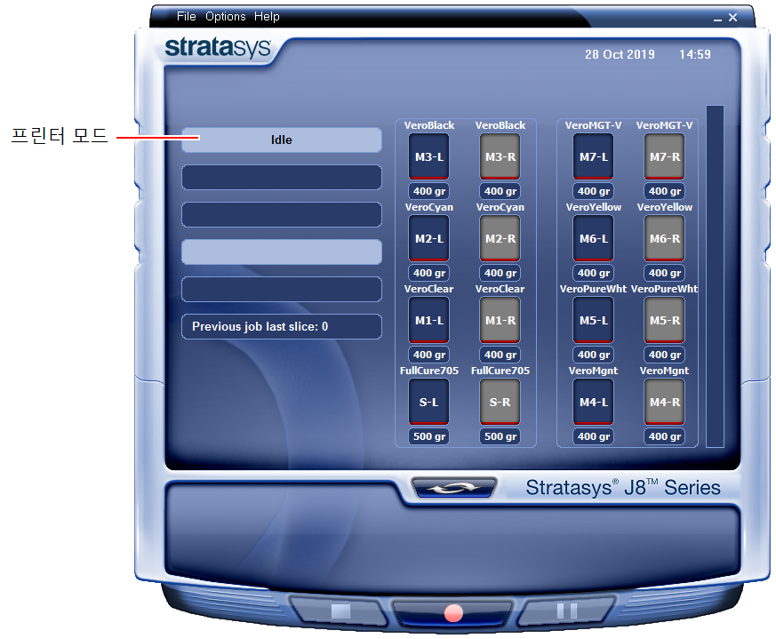 롤러 폐기물 수집기와 퍼지 유닛에서 폐기물 재료를 펌핑하는 튜브는 1000시간 사용 후 교체해야 합니다. 이 시간 이후에는 프린터 소프트웨어가 유지 관리 경보를 보내 프린터 인터페이스 화면에 표시합니다.