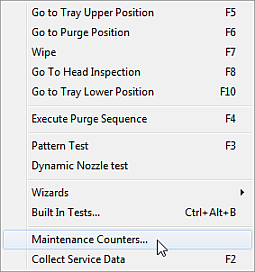 Options (옵션) 메뉴에서 Maintenance Counters (유지 관리 카운터)를 선택합니다. |