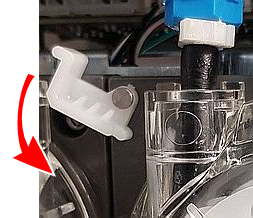 흰색 고정 클립을 돌려 펌프를 풉니다. |