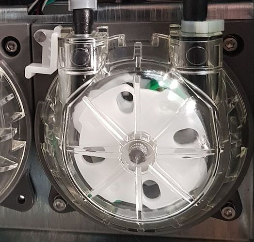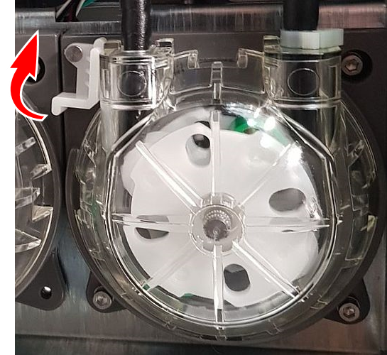 흰색 고정 클립을 돌려 펌프를 고정합니다. |