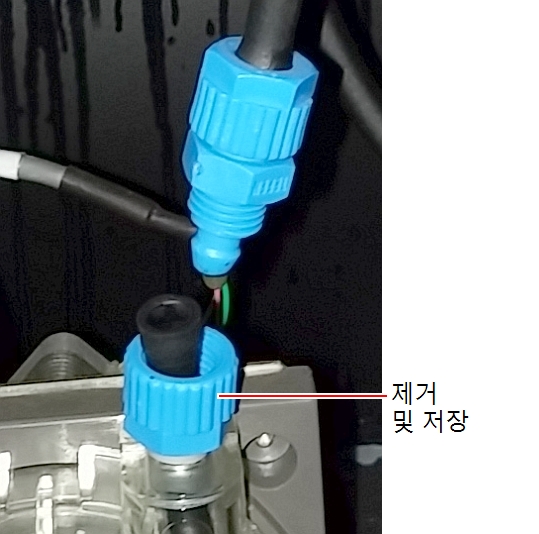 a. 각 폐기물 펌프 튜브를 연결하는 피팅의 나사를 풉니다.