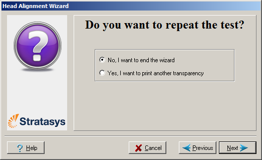 Si las líneas verticales de los cabezales de impresión no están alineados en ambos extremos, elija No para cerrar el asistente, luego haga clic en Next (Siguiente). |