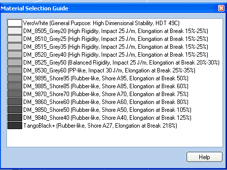 Открывается руководство по выбору материала, где отображаются базовые материалы модели и доступные цифровые материалы (их сочетания).