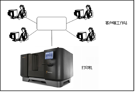 Objet1000 Plus 3D 打印系统可以设置为单站点系统或多站点系统。当连接到本地计算机网络时,该系统可为多个用户提供服务。在此类配置中,每个用户(客户端)准备用于生产的文件。