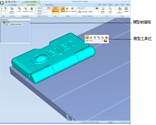当在成型托盘上放置对象时,会显示 Model Settings(模型设置)功能区。