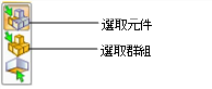有時您會需要選擇一個組件內的個別元件。其他時候您會需要選擇一整個組件。顯示在功能區內的 Selection(選擇)圖示可在您點選模型時決定會選取什麼: