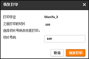 最后打印的切片数没有出现在打印机界面中,即使服务器计算机显示了 Continue from Slice(从切片继续)确认对话框。