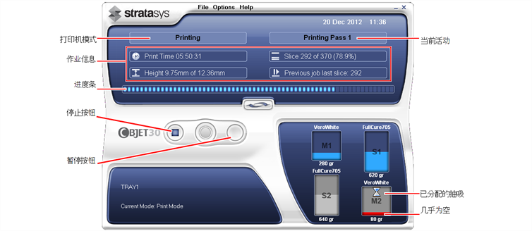 | • | 模型由预打印变为正在打印。 |