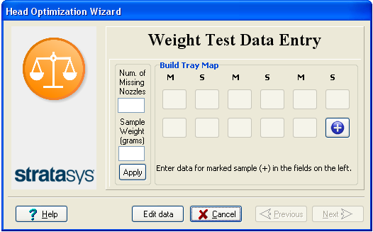 데이터 입력 화면의 레이아웃은 빌드 트레이의 조형된 샘플에 맞게 나타납니다. 화면에