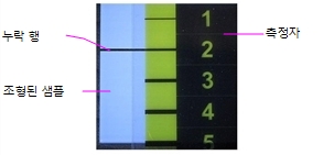 a. 표시된 바와 같이 측정자 오른쪽의 정렬 선을 샘플 하단에 배치합니다.