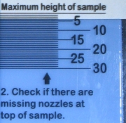 참고: 조형된 샘플 하단에 측정자를 정렬하기 때문에 하단 가장자리의 누락 노즐이 측정자 상단에서 측정됩니다.