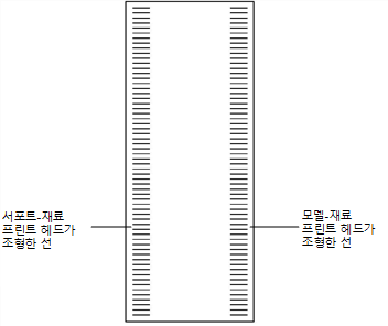 프린터가 테스트 용지에 일련의 선을 조형합니다.
