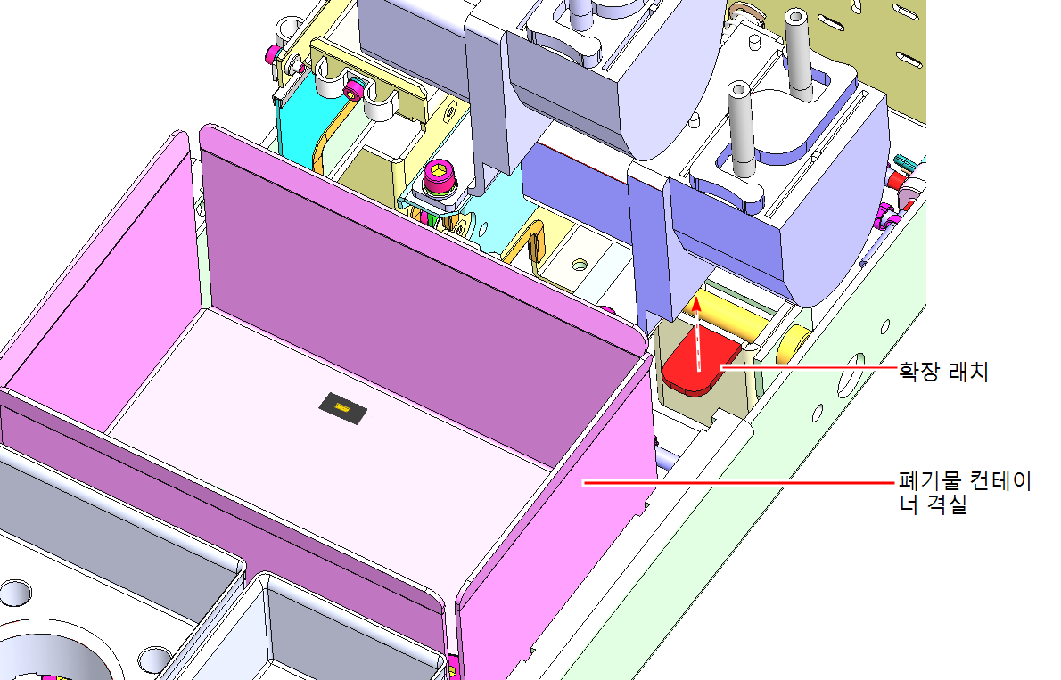 폐기물 컨테이너 격실의 청소용 천을 제거하고 격실이 깨끗한지 확인합니다. |