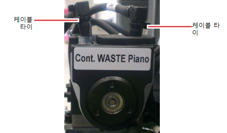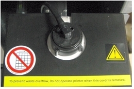 폐기물 컨테이너 커버 없이 프린터를 작동하면 폐기물 무게 측정이 부정확하게 되고, 이로 인해 폐기물이 프린터에 넘치게 됩니다.