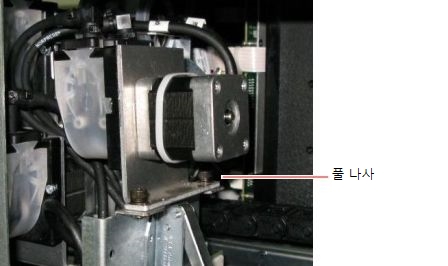프린터의 오른쪽에 있는 섀시의 개구부에서 서포트 펌프에 액세스할 수 있도록 서랍을 반 정도 닫습니다. |