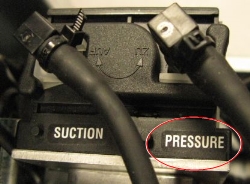 2단계에서 레이블을 지정한 튜브를 PRESSURE(압력) 레이블 근처 펌프에서 돌출되는 튜브에 연결합니다. |