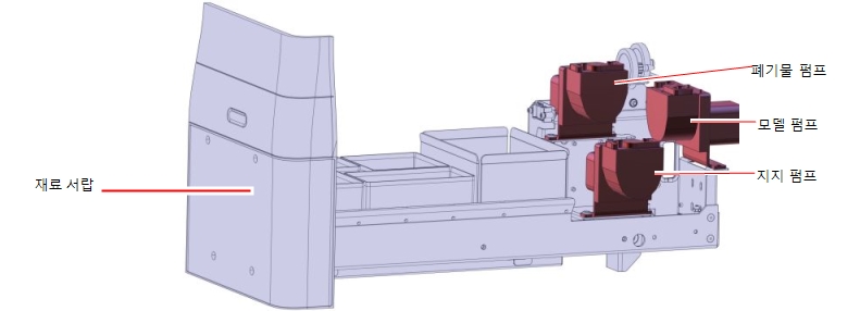 조형 중 펌프 영역에서 이상한 잡음이 나면 모델 펌프 또는 서포트 펌프 튜브 홀더가 적절하게 설치되었는지 확인하십시오. 필요한 경우 튜브 홀더를 제거하고 다시 설치합니다.