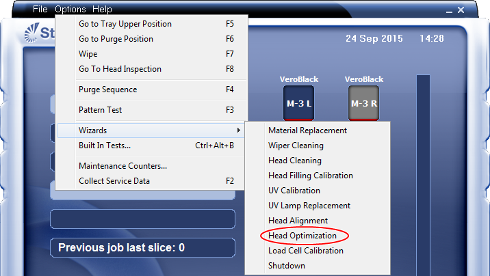 Hinweis: Der Kopfoptimierungsassistent funktioniert nicht, wenn der M3-Einschub leer ist.