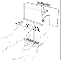 | 2. | 轻轻将替换打印头插入打印模块的空槽,并将打印头驱动卡插入对应的插槽。 |