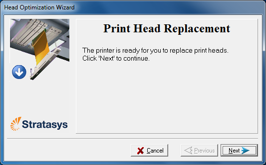 选择需要更换的打印头后,打印机加热并清空打印模块,然后准备好打印机。